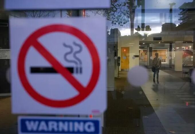 这是2021年5月29日在新西兰最大城市奥克兰拍摄的室内场所制止吸烟标识。 会议新闻公报介绍,不合法交易在全球烟草交易总额中约占11%,消除烟草制品不合法交易可使全球税收每年添加约474亿美元,保障各国政府有更多资金用于可持续发展。