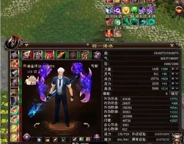 評分127萬,血量241萬,藍量9.8萬,外功進犯4.3萬,射中16萬,閃避近5萬,會意進犯3061,會意防禦622,主毒進犯27286!